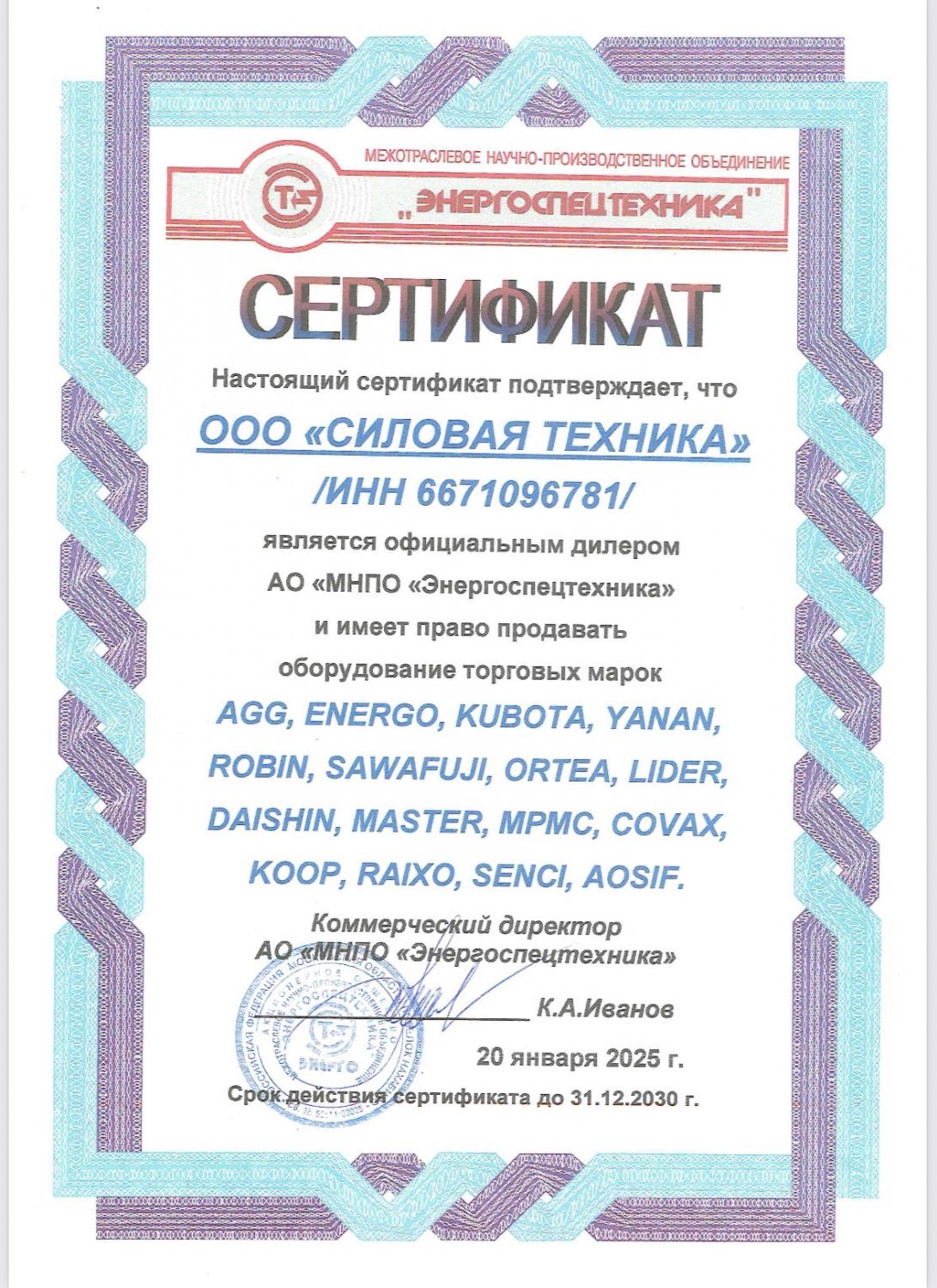 Сертификат Energo